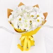 9 хризантем: хризантема кустовая белая (ромашковая) - 5 шт., хризантема кустовая зембла белая - 4 шт.,  рускус, фетр,крафт, бант.
