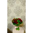 Уменьшенный: хризантема кустовая красная - 2 шт., хризантема зеленая кустовая - 2 шт., роза красная кустовая - 3шт., салал, фетр зеленый.